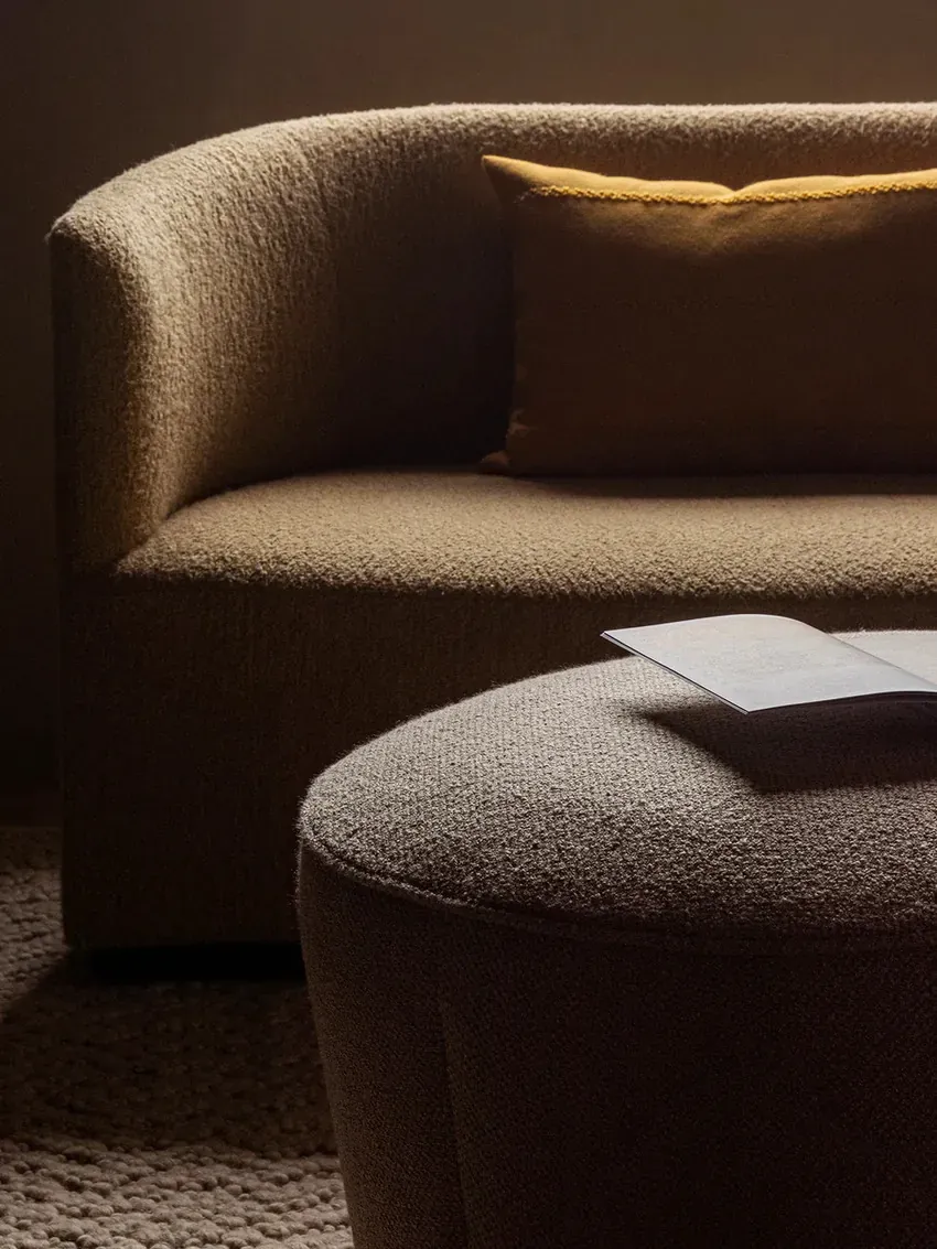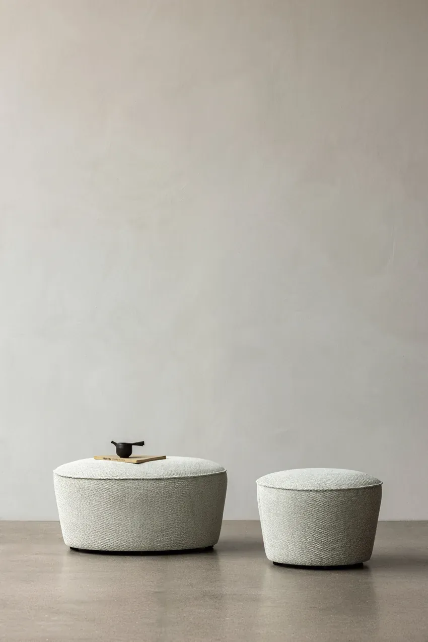 坐椅凳是一款多功能的家具配件,適用於多種空間和用途,可做為腳踏墊、額外座椅。微微的錐形外型,營造出優雅的輪廓,有圓形和橢圓形兩種形狀,並有多種面料選擇,可根據空間進行客製化。