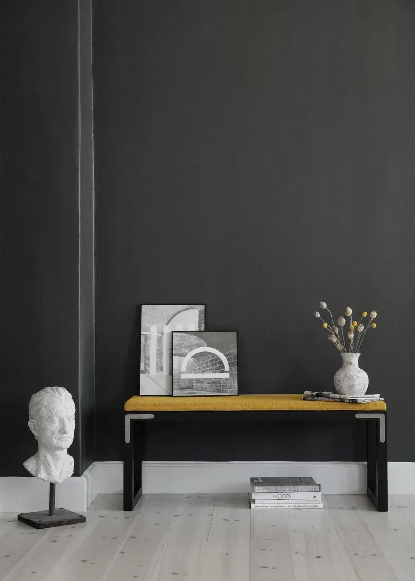 染黑梣木夾板、梣木實木、金屬、布面坐墊