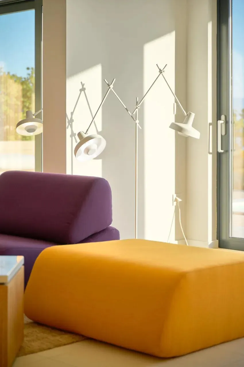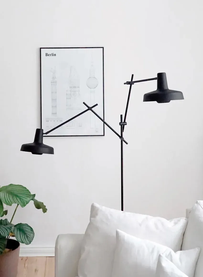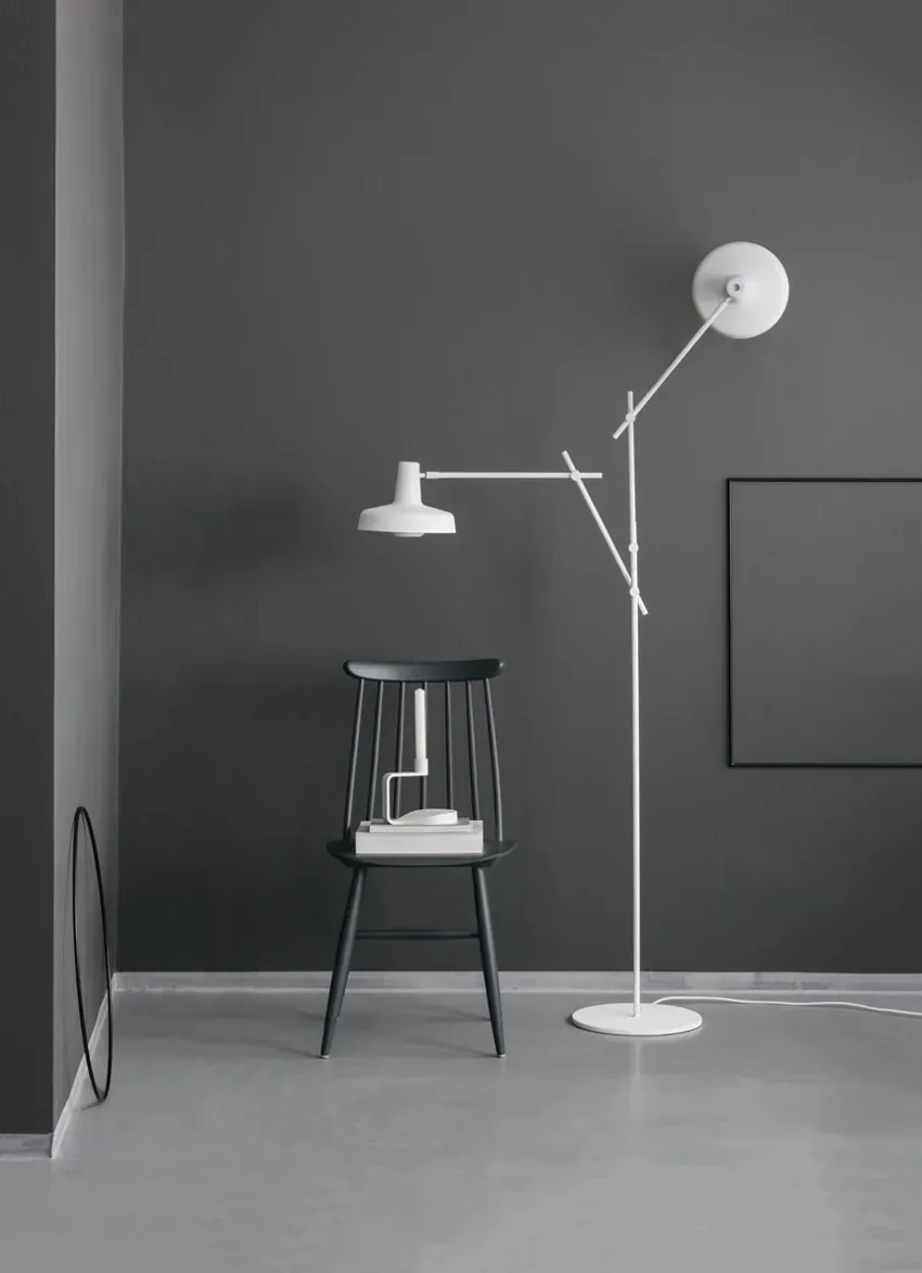 Arigato 的可調節性和適用性,適合在各種空間美麗展現。燈罩和燈臂皆可轉動,使光線能夠向各個方向投射。該系列由桌燈、落地燈、壁燈、吊燈和吸頂燈組成,配有手工製作的鋼製燈體,和啞光黑色或白色粉末塗層的鋁製燈罩,在整個系列中具有最多變的可能性。