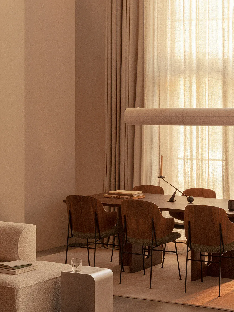 Hashira 線性吊燈旨在為空間帶來寧靜和精緻,非常適合放在餐桌或書桌上,其水準形式重新定義了流行的照明系列,以極簡主義的美學提供環境照明。流線型的燈似乎漂浮在空氣中,通過電線懸掛在天花板上,其原始亞麻燈罩由磁鐵固定到位,無需笨重的螺絲。可調光、可更換的LED光源發出溫暖的光芒,亮度足以應對任務,但又足夠微妙,可以增添氛圍。