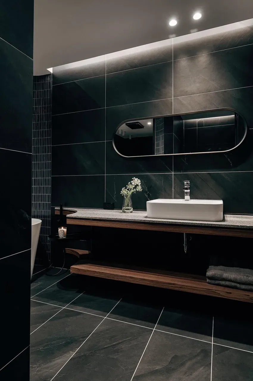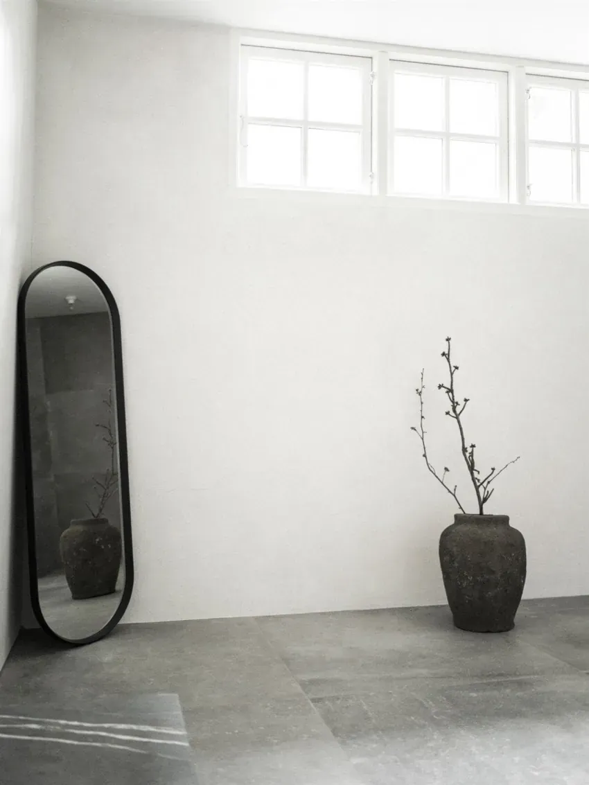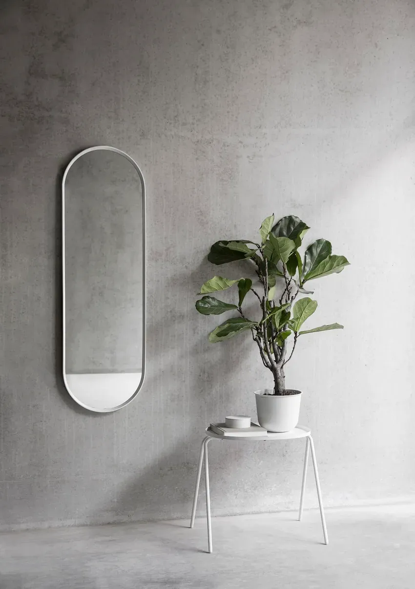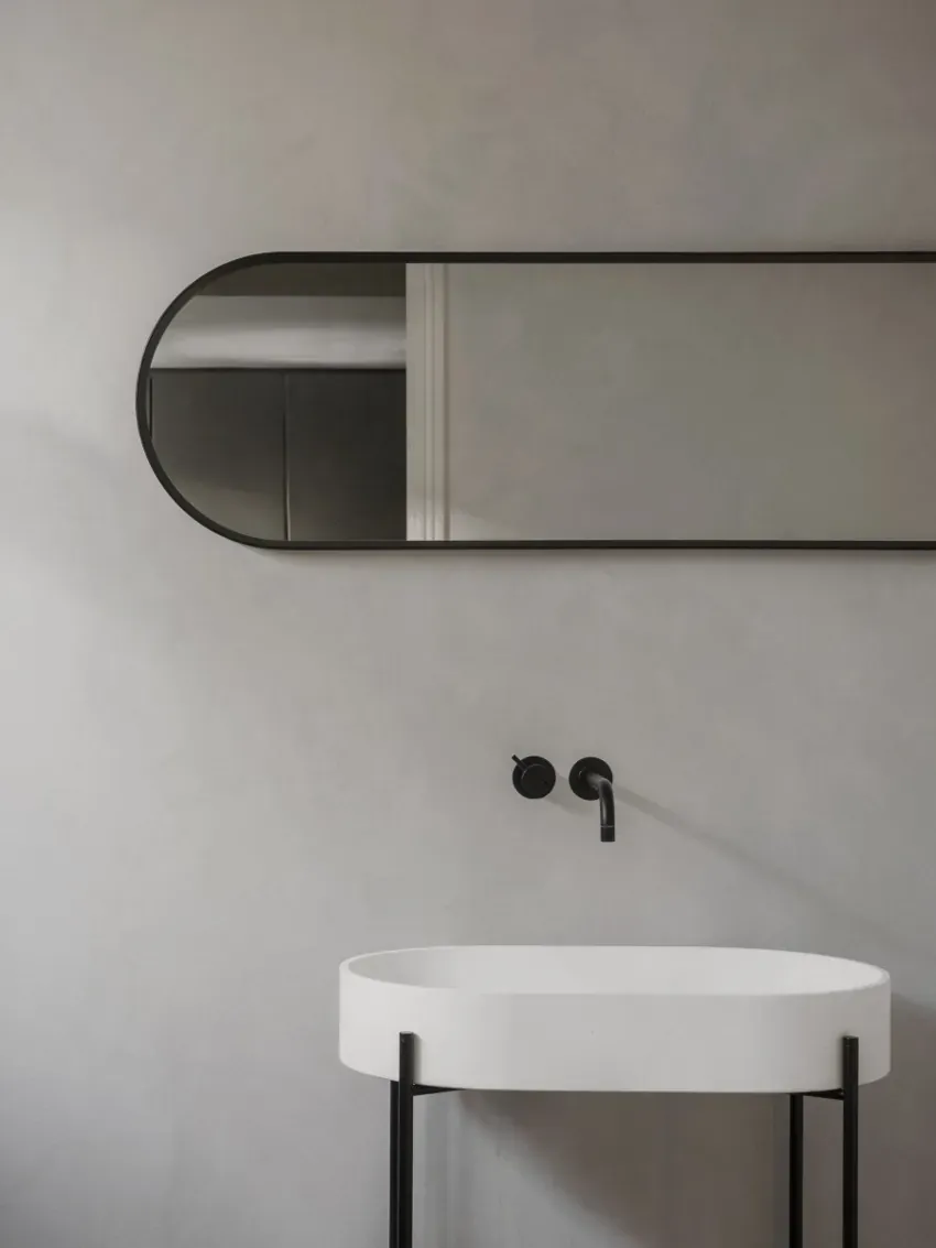 受到復古更衣室鏡子的啟發,橢圓形鏡子簡單而有流線型。柔和的圓角外型,可在浴室、走廊或更衣室使用。均採用粉末塗層金屬框架製成。