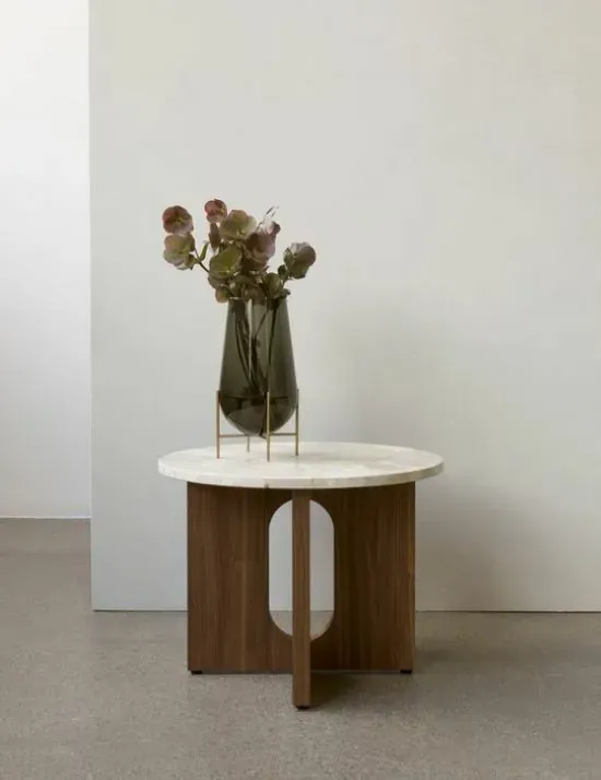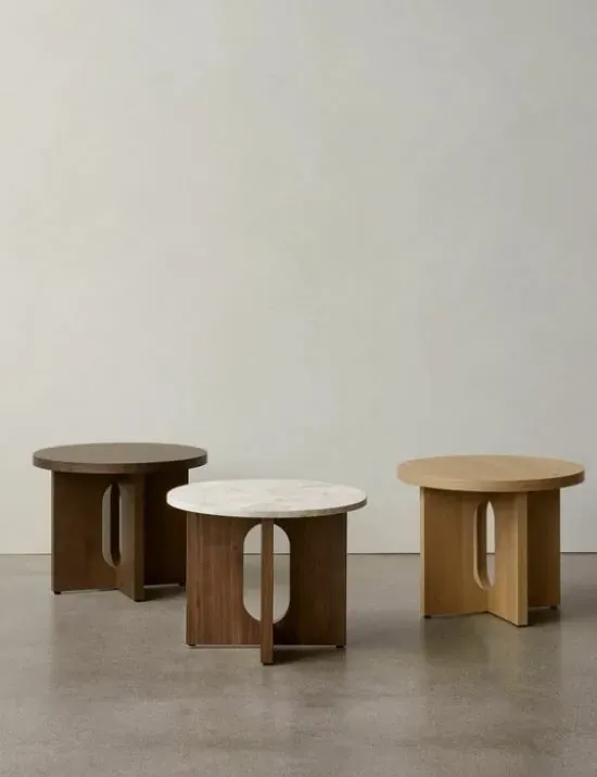 完美結合剛毅和柔美的元素,木質桌腳結構,檯面可疊加石材。巧妙地運用工藝,圓形桌面懸垂於寬闊的底座上,線條剛柔並濟。