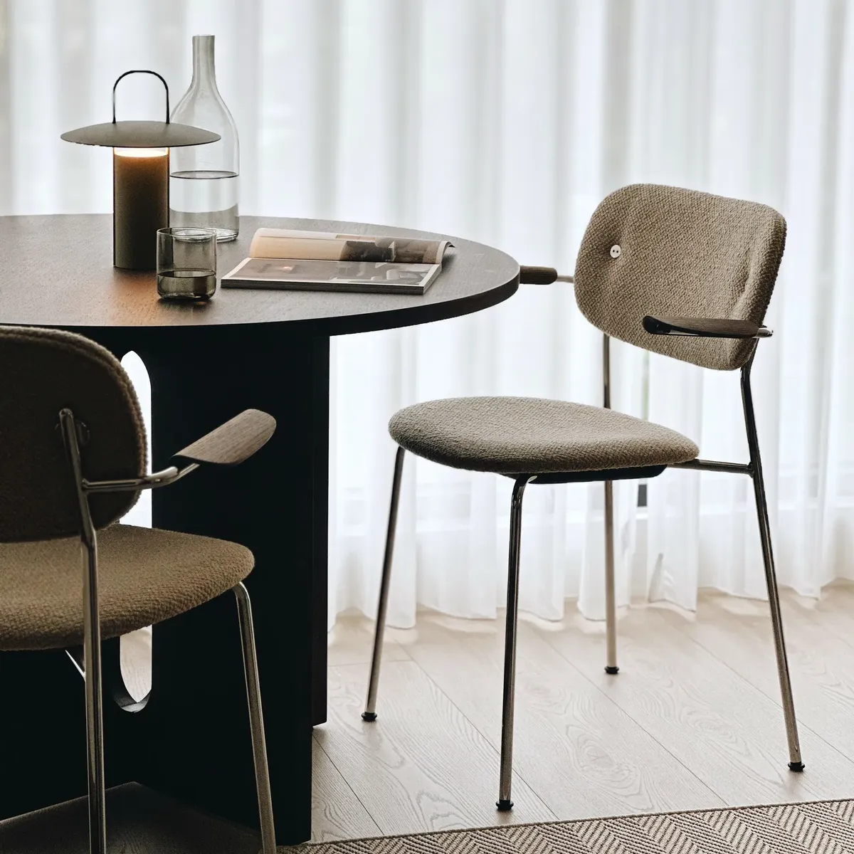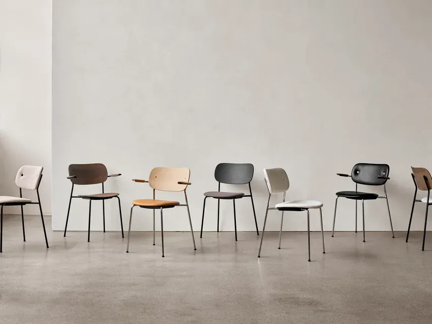 Co Chair Collection 將輕便、時尚的外形與出色的座椅舒適度相結合。提供有或無扶手款的三種木質版本,全軟墊 Co Chair 的多功能設計,設置在黑色金屬或鍍鉻腳座。座椅和靠背採用輕質襯墊和全軟墊,提供各種面料訂製,帶來溫暖的舒適感。