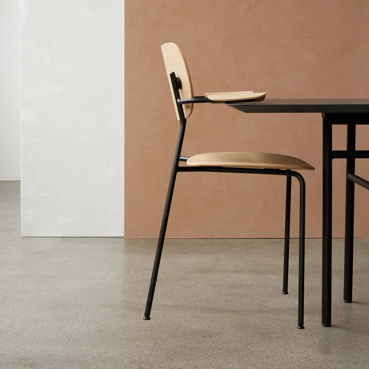 Co Chair Collection 將輕便、時尚的外形與出色的座椅舒適度相結合。以寬闊的單片靠背為特色,並提供有或無扶手款的版本,全軟墊 Co Chair 的多功能設計,設置在黑色金屬或鍍鉻腳座。座椅和靠背採用輕質襯墊與全軟墊,提供各種面料訂製,帶來溫暖的舒適感。