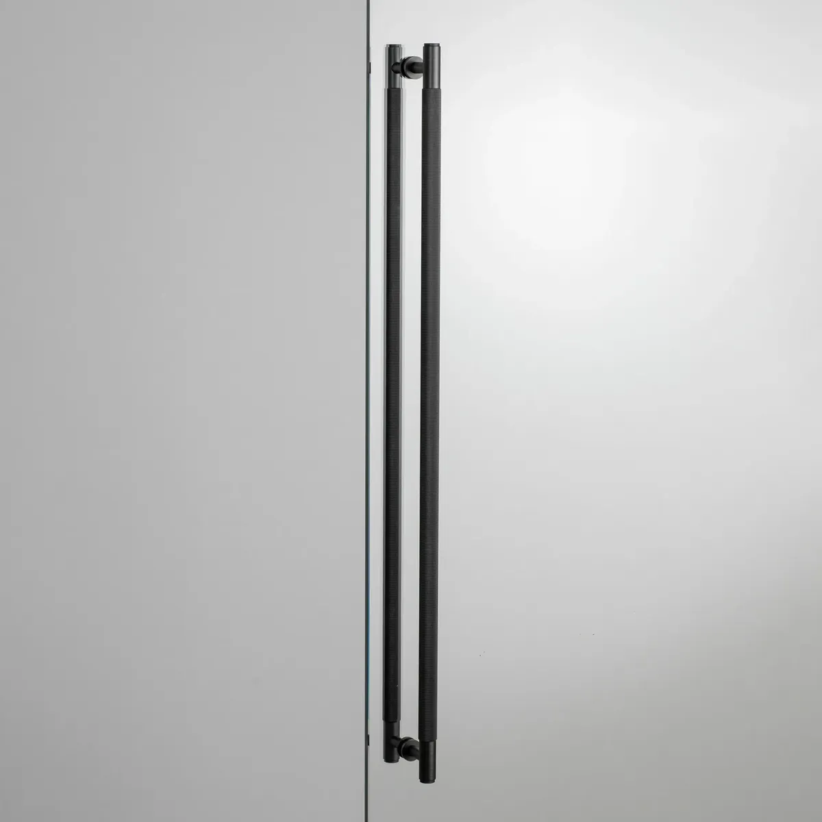 由實心不銹鋼製成的雙面壁櫥桿。這些拉桿採用我們標誌性的鑽石切割十字滾花圖案,並由手工精製而成。配有小型實心鋼盤