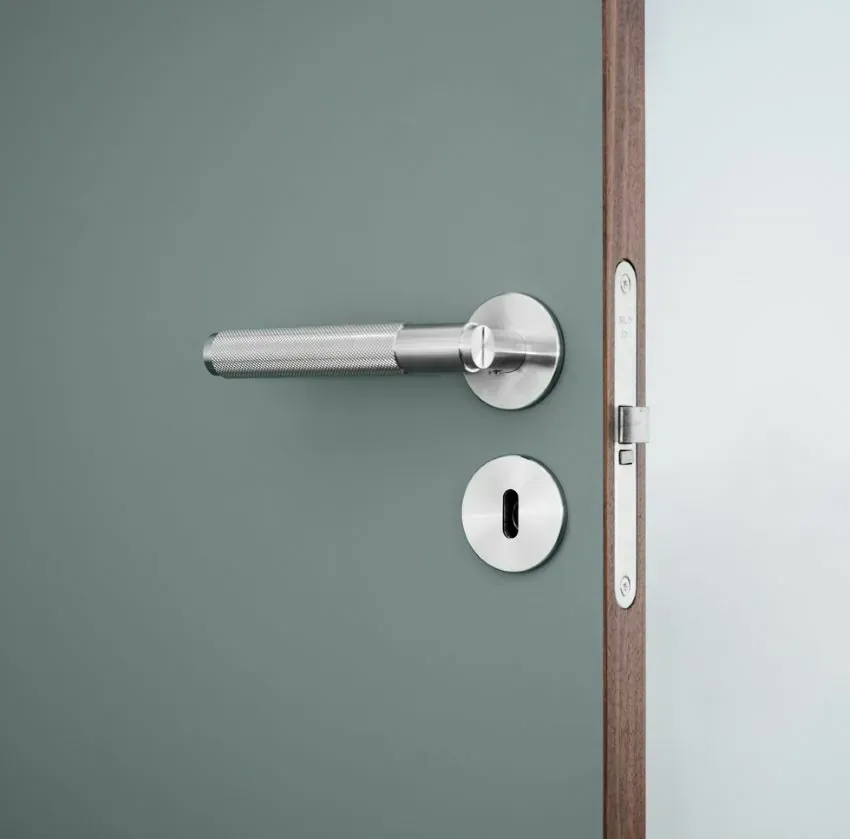 由實心不銹鋼製成的 38 毫米彈簧門把手。這款門把手採用我們標誌性的鑽石切割十字滾花圖案,並由手工精製而成。成對出售。