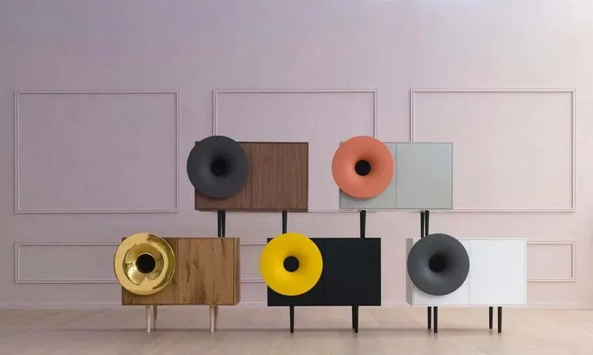 Caruso 不僅是音響與櫥櫃,更像是一種藝術品,有點未來主義又帶有懷舊感,而鮮豔的色彩碰撞為特點,成為空間裝飾的一個亮點!其沉靜低音與豐富的高音效果,運用高科技將音樂自然帶入我們的生活中,為環境帶來更多活力和藝術感。