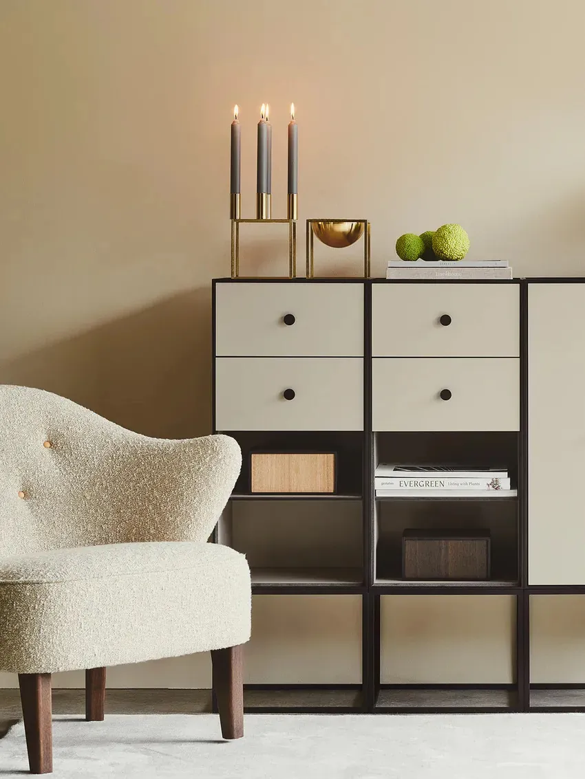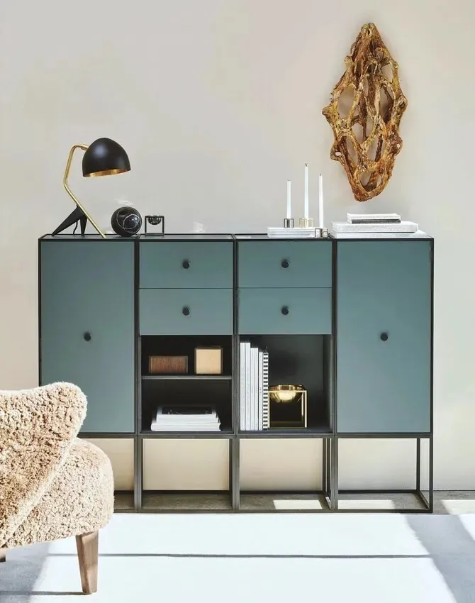多功能且時尚的 Frame 70 ,排列創造全新的幾何組合,新款的設計有相同的立體主義理念,但現在更高更纖薄,使櫃體可以放置在狹窄的地方,能夠單個或多個放置,做為邊櫃、收納櫃或床頭櫃,增添其實用功能性。
