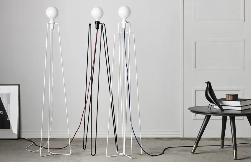 Model 是一系列照明燈具,以其幾何形狀和輕盈簡單的輪廓而著稱。有三種不同的框架結構和黑白兩種的框架顏色。此外,為了增添一點個性,中心有 7 種顏色的紡織電纜可選擇。而鋼框架由手工成型、銲接和組裝。整體獨特有趣又不失自我風格。