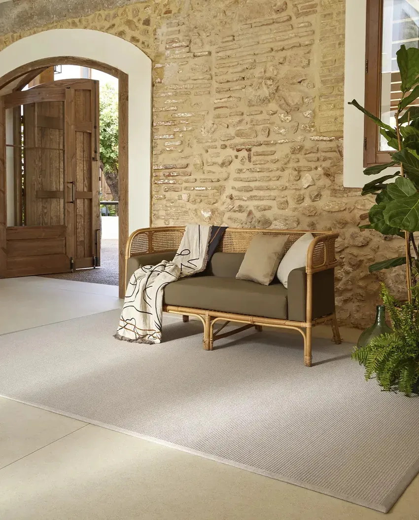 透過再生塑膠紗線製作的地毯,重新定義了劍麻材質,使地毯更加耐用、柔軟且易於清潔,適用於室內和室外空間。