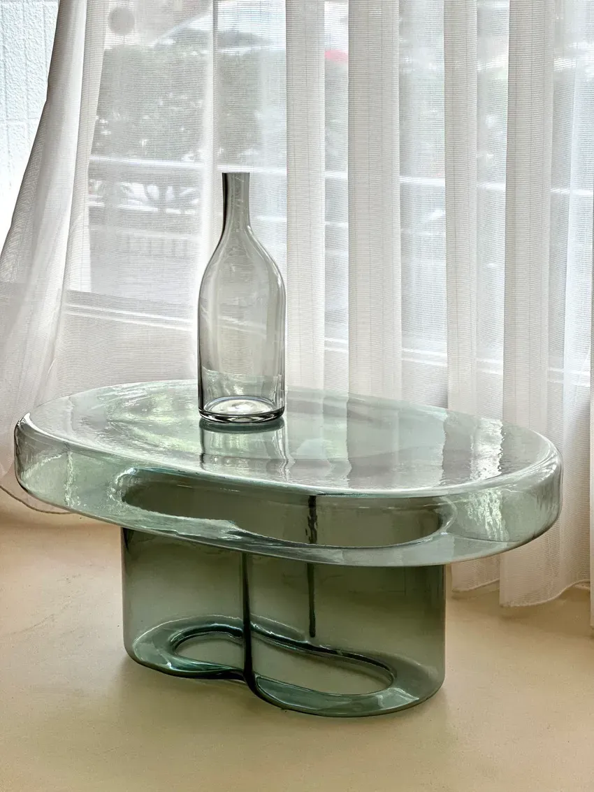 美麗的口吹玻璃茶几 Soda 推出的新系列 ,橢圓形的桌面打破慣性的思維,創造出更有趣且迷人的畫面。