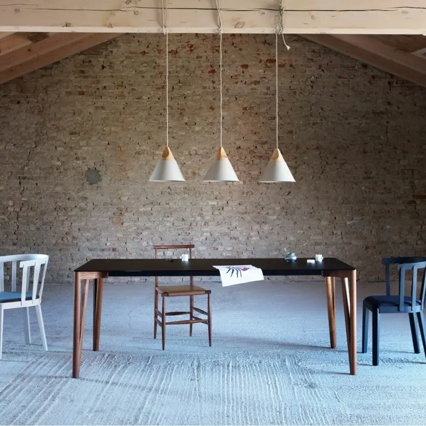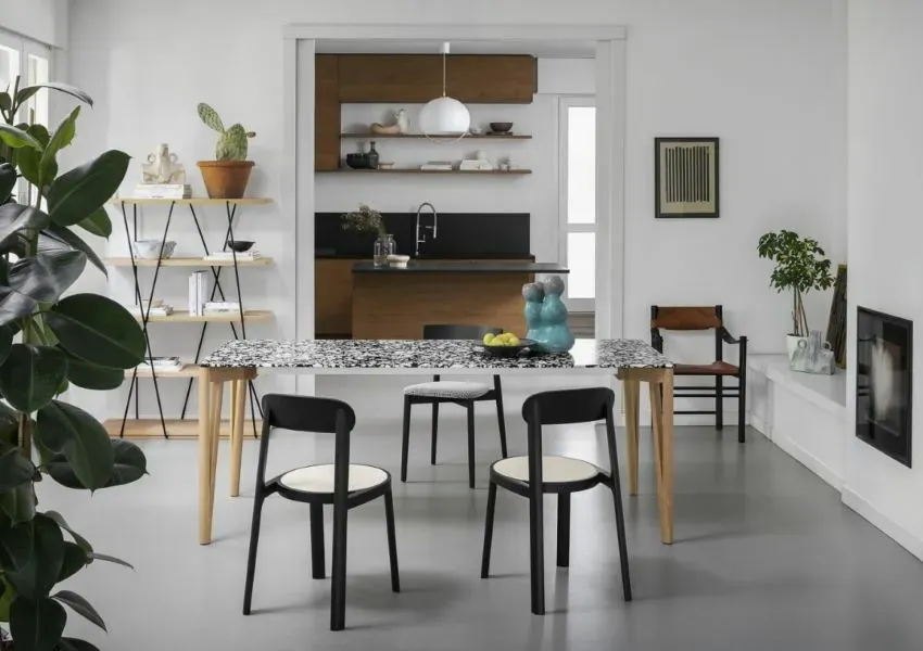 Decapo是一張優雅、極簡又帶點東方風格的餐桌。特色為其桌腳的窄V形。桌面材質有陶板、實木、大理石、Fenix 可供選擇。