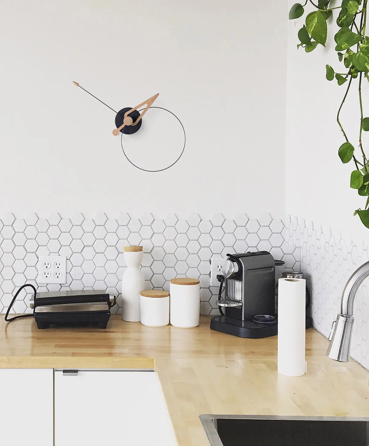 具前衛設計的西班牙原創時鐘,簡潔俐落帶有北歐氣息,有胡桃木或橡木飾面與黑白色調相結合。