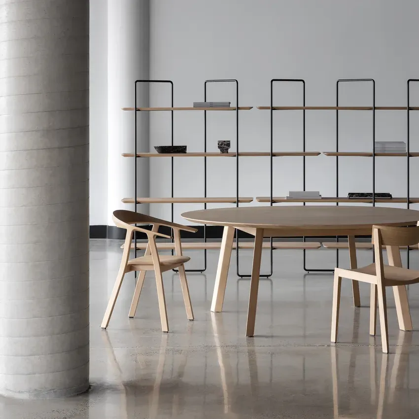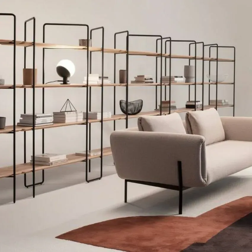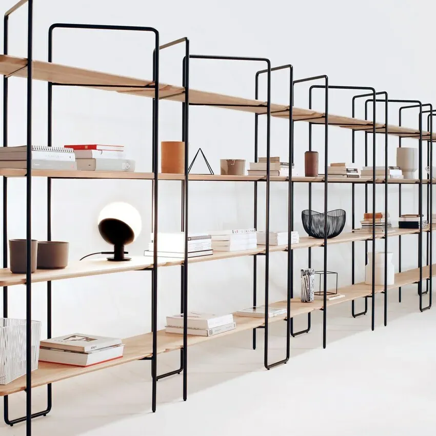 Knif 層架是一種模組化系統,可滿足各種室內設計概念中的客製化解決方案。層櫃由金屬結構和實木層板組成,提供多種高度和寬度的組合,可以展示放置不同性質的物品。這種堅固的結構具有視覺上低調及輕盈感。Knif 的簡約風格使其容易與其他室內元素搭配,同時又保留了自己的特色。