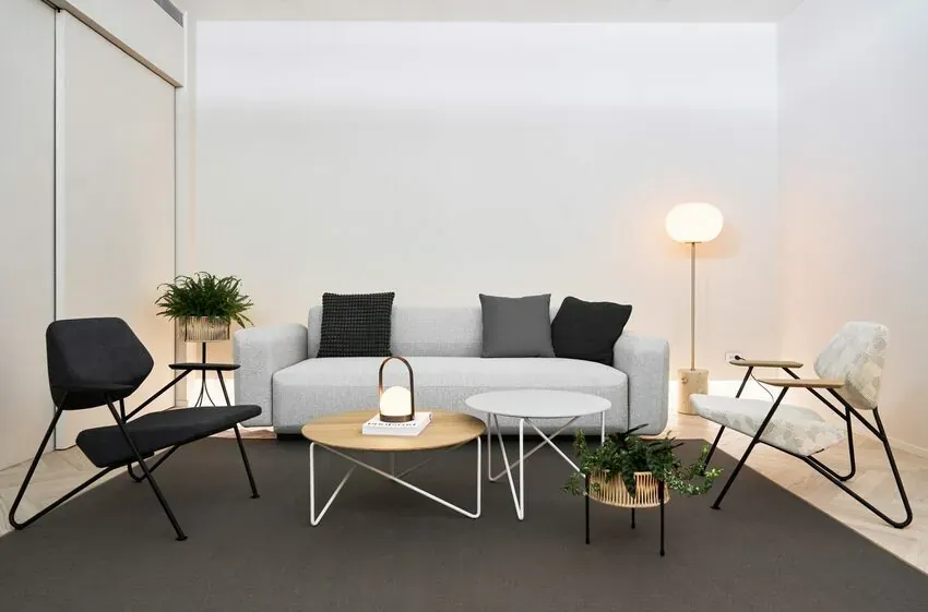 彎曲金屬桌腳匹配現代主義設計,從側面觀看三角形桌腳,隨著觀賞者角度移動,底部的3個三角形就會重疊成幾合3D圖景,十分獨特趣味。