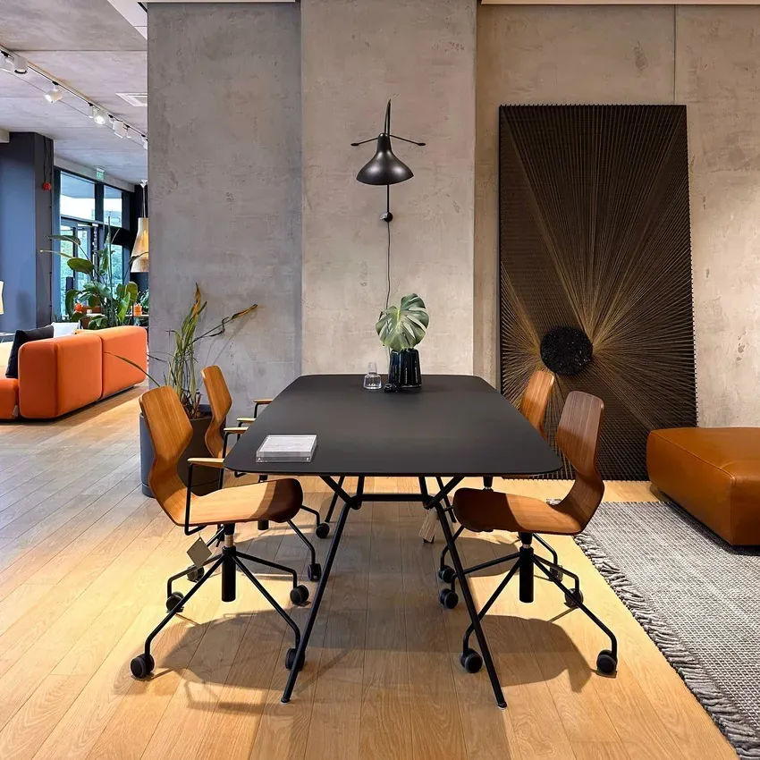 Strain為一系列典型的底座,交織的鋼管及 Fenix 精加工製成的薄型桌面,提供桌子優雅簡潔的選擇。桌子有各種尺寸,可以與不同類型的椅子搭配。