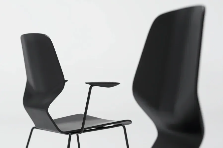 外殼的S曲線幾何形狀,提供良好的人體工學設計,由 2D 模壓膠合板製成,椅座為實木底座。