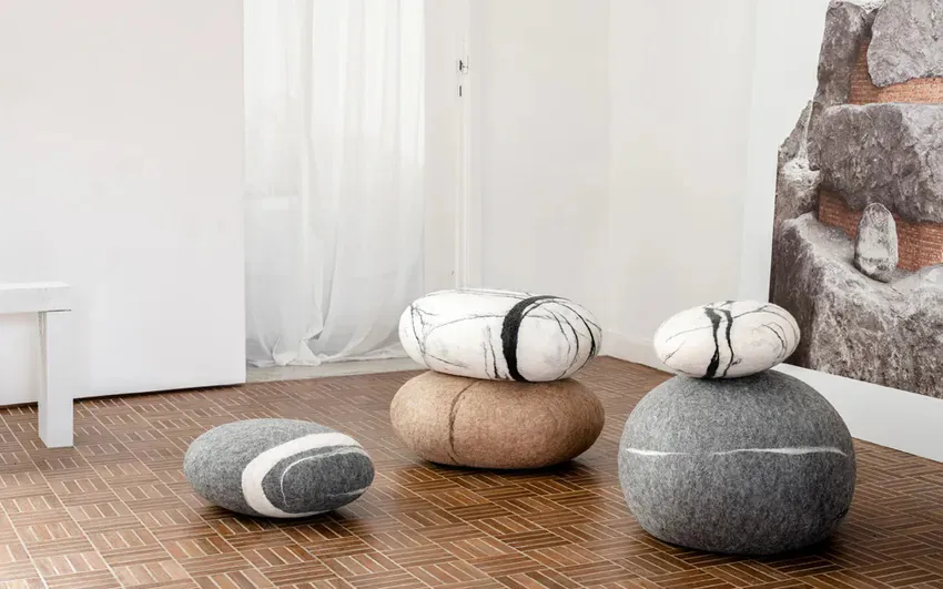 此系列無縫靠枕由 100% 天然美利諾羊毛手工製作而成,就像自然界中的石頭,每一顆都是獨一無二的。可隨性地將大大小小的鵝卵石椅凳及靠枕點綴在居家環境,宛如置身大自然的氛圍,享受天然羊毛恬靜溫潤的觸感,創造屬於自己的溫馨舒適空間。