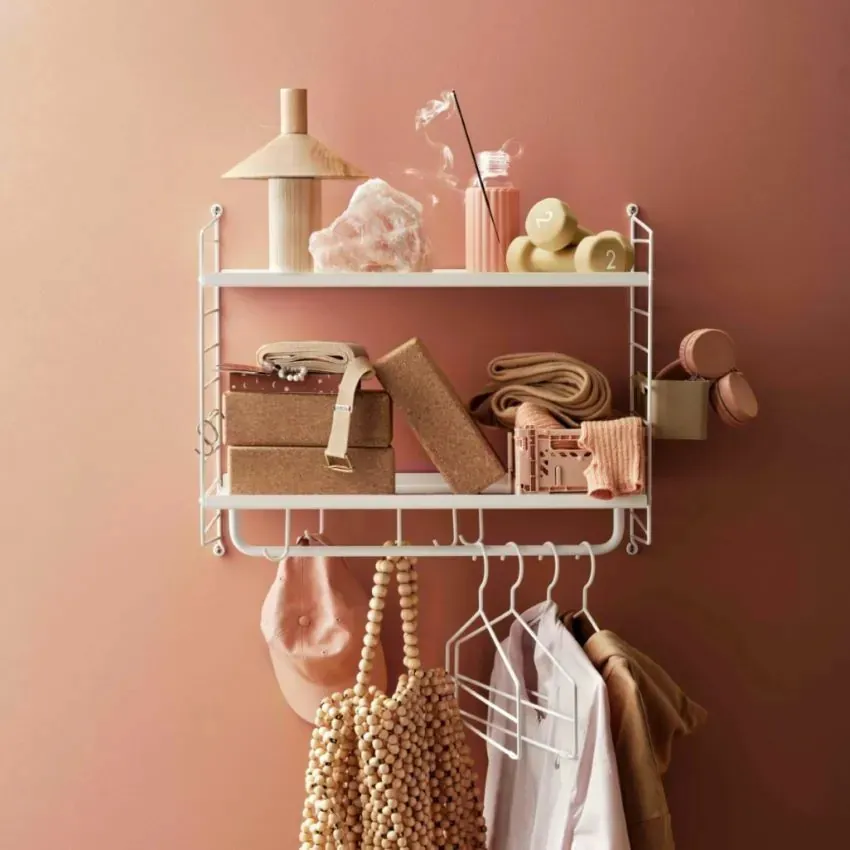 衣架是我們配件系列的一部分,為衣櫃提供完整的收納解決方案。衣架設計有一根額外的鋼線,可以再多掛幾件衣服,增加功能性。每組包裝包含四入衣架,讓櫥櫃內也能整齊乾淨。