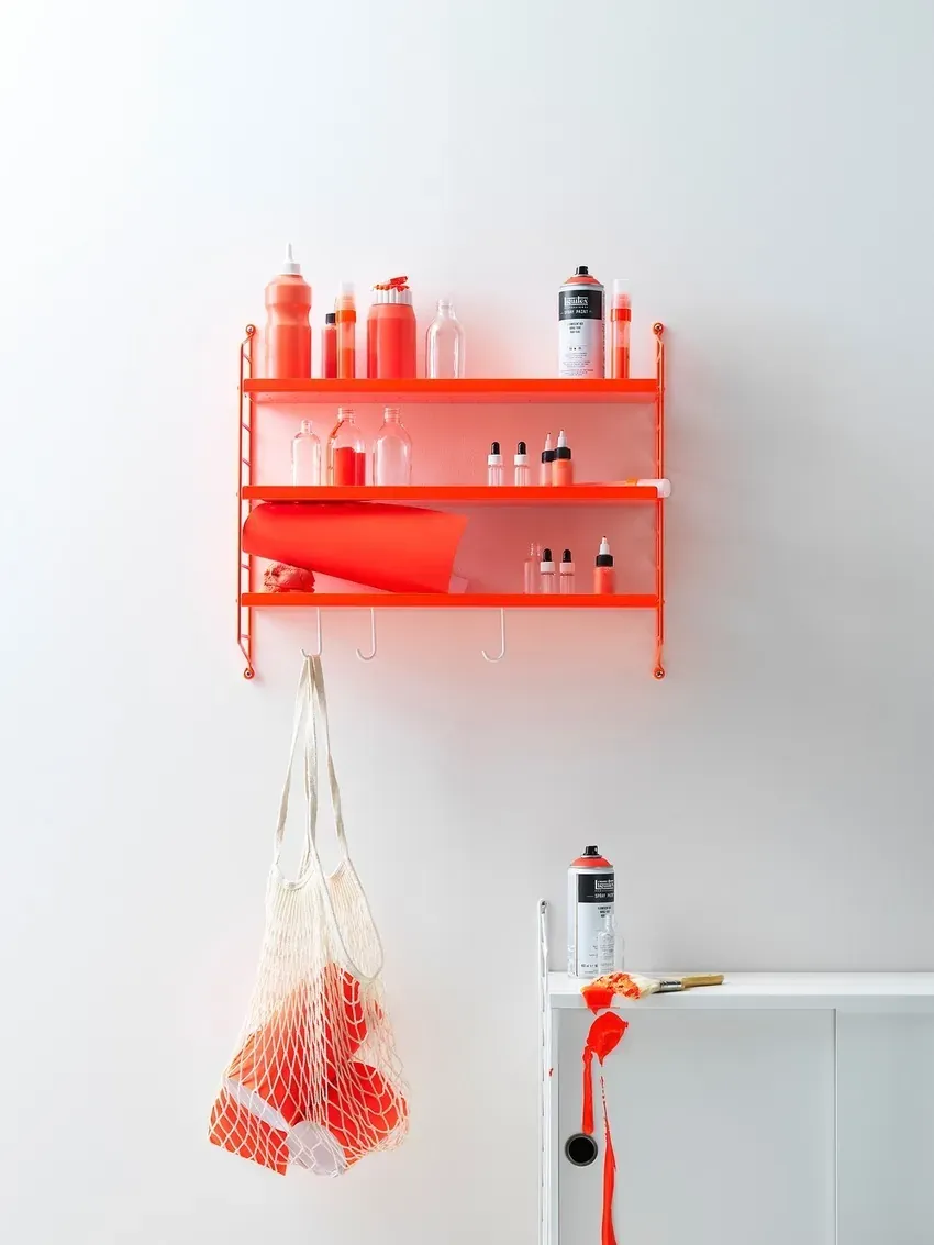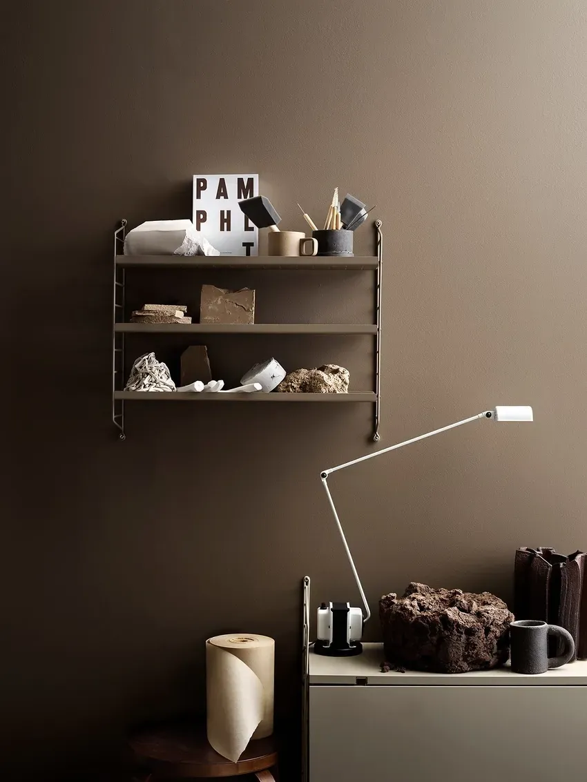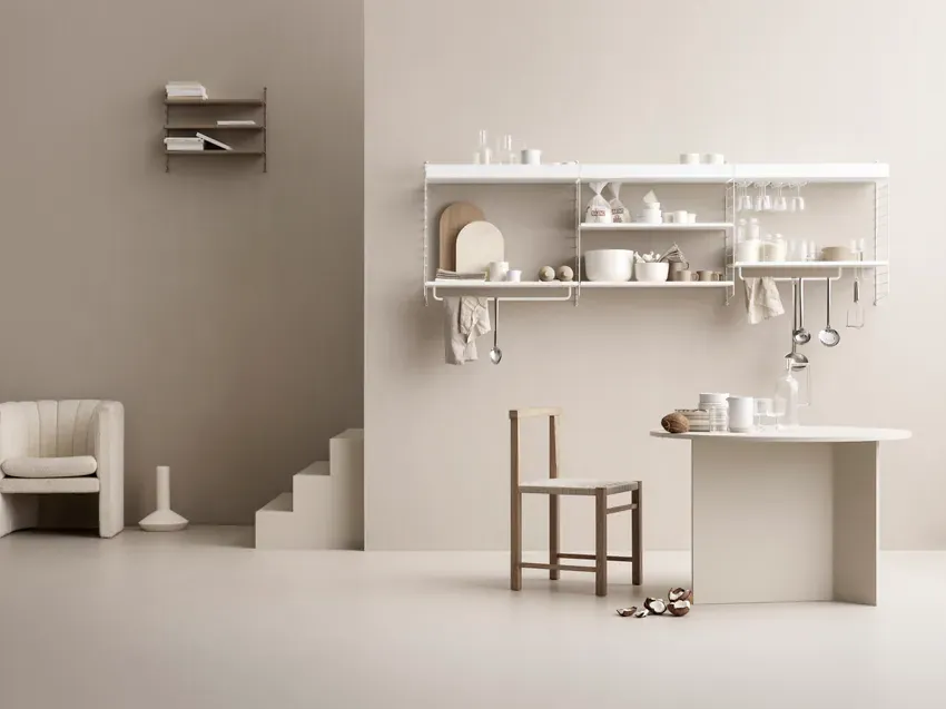 Pocket 經典款式可作為 String 品牌入門的設計款式。此系列極簡精巧,金屬版本適合安裝在餐廳、廚浴空間,用於牆上的佈置陳列層架,鐵件的穿透感讓空間更輕盈、視覺更舒適,多種顏色可依風格搭配,也可多組拼湊組合成更大的層架。