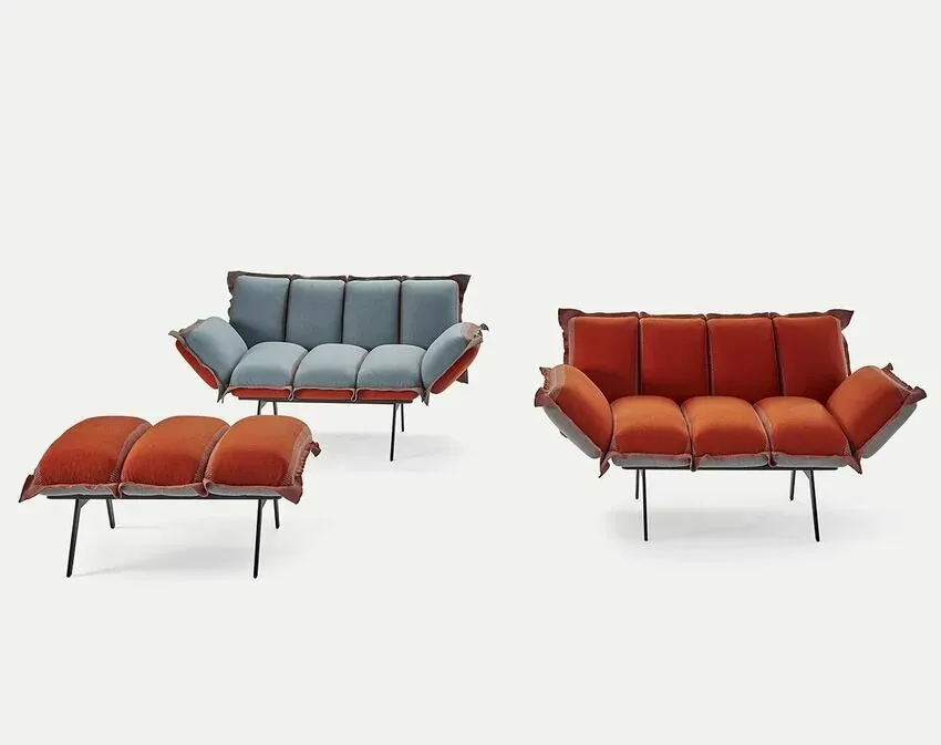 Next Stop 的設計靈感是火車座墊,以椅墊為基準, 椅墊的數量決定座長。可以新增扶手來製作兩人座和三人座沙發以及扶手椅。額外的桌子可以安裝在中心、末端或角落,成為多樣性變化的沙發組合。