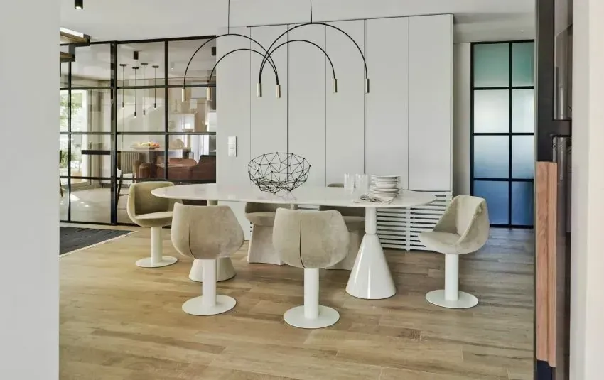英式優雅的 Magnum 系列靈感源自酒杯的形狀,該系列包含吧檯椅、休閒椅和餐椅,座椅可360度旋轉,外型奢華並兼具舒適的坐感,適用於公共空間和住家。