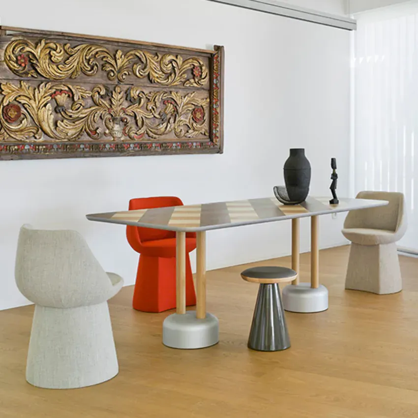 英式優雅的 Magnum 系列靈感源自酒杯的形狀,該系列包含吧檯椅、休閒椅和餐椅,外型奢華並兼具舒適的坐感,適用於公共空間和住家。